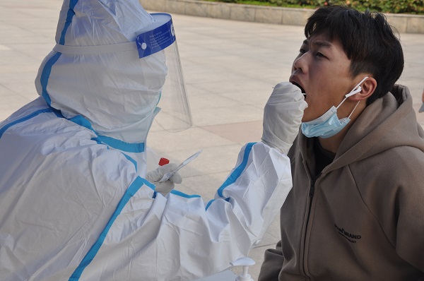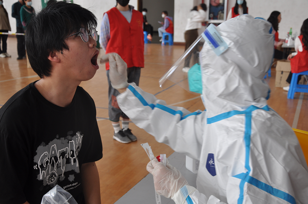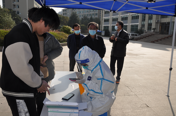 学校严格按照相关要求,从严从紧、从实从细落实各项措施,在校内设置采样点4处,按学院、专业顺序分批次、错峰进行采样。学校各部门科学分工、各司其职、通力合作。接到核算采样检测任务后,广大党员冲锋在前开展志愿服务工作,学生志愿者紧急支援,现场筑起“青春防线”。现场志愿者采取轮班制,坚守在现场的每一个岗位上,进行着秩序维护、采集引导、身份信息采集、分贴核酸检测条码等工作,医务人员守护“疫”线,一丝不苟地为师生和工作人员进行采样,全员的共同努力使检测工作高效有序地进行。
