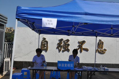 党委书记、常务副院长王其军等校领导及相关职能部门、各系部负责人一早便到学校北门、学生宿舍等地现场指导工作,督导测温、核验等环节,把好关键环节,并向参与学生返校报到工作的师生志愿者的辛勤付出表示感谢,对学生志愿者在烈日下为返校学生提供咨询、运送行李等志愿服务工作给予了高度肯定。