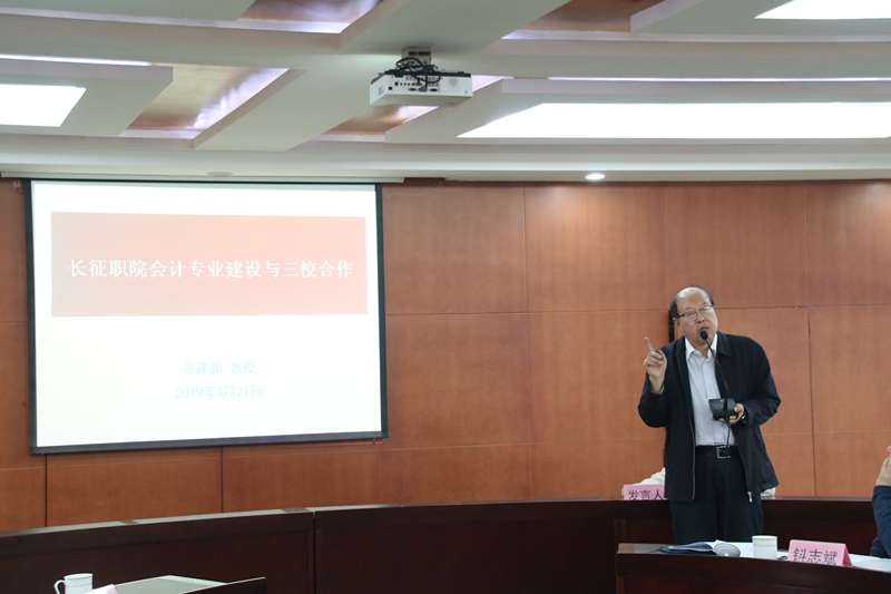 会计系主任章建新教授向与会者介绍了会计系专业的基本情况及三校联盟的前期工作,去年11月曾亲自率队赴丽水职业学院交流访问并签署了网络课程备忘录。