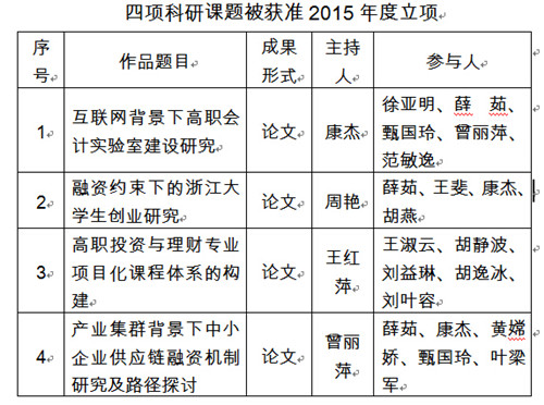 在7月25在安徽合肥召开的中国商业会计学会第十一届高职教育改革研讨会上,我院会计系和财管系的老师们又取得了好成绩:共有四项课题立项、获得优秀论文二等奖三等奖各一篇、课题完成结题的共三项。(会计研究所供稿)
