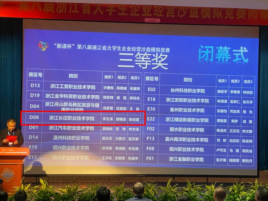 浙江省大学生企业经营沙盘模拟竞赛是省级A类学科竞赛,参赛学生分别以企业经营者、财务、市场总监等身份,在模拟的不断变化的市场竞争条件下,及时分析并调整投资、融资、生产、广告方案等,并且加以执行,从而实现企业盈利及可持续发展。融入了数智化内容的企业沙盘模拟经营比赛是一项策略型的团体赛,考验选手对市场机会的把握能力,以及激烈竞争中果断调整方案和策略的能力,具有很高的含金量。