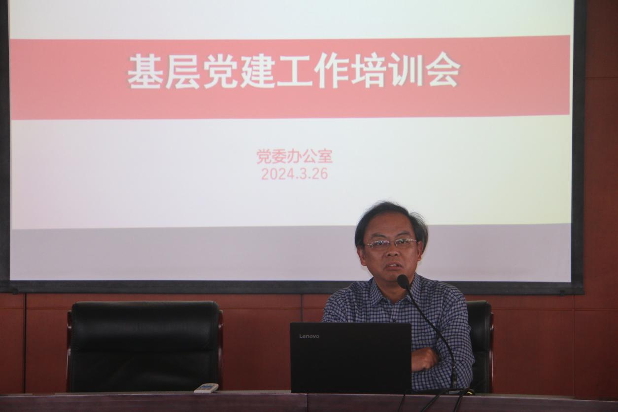 为全面落实党要管党、从严治党要求,进一步加强学校党建工作,进一步提升基层党务干部的业务素质和履职能力,3月26日,学校在行政楼第一会议室召开党建工作培训会,校党委书记、常务副院长王其军主持会议并讲话,学校党委办公室成员、全体党总支书记、副书记、组织员参加会议。