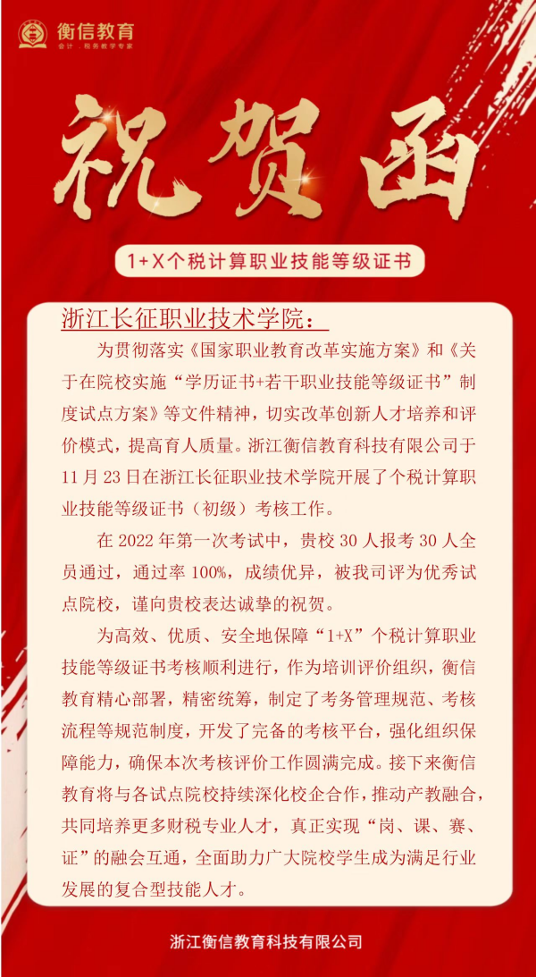 为贯彻落实《国家职业教育改革实施方案》和《关于在院校实施“学历证书+若干职业技能等级证书”制度试点方案》等文件精神,切实改革创新人才培养和评价模式,提高育人质量,11月23日上午,财务与会计学院30位同学参加教育部1+X个税计算职业技能等级证书考试并全部通过,通过率100%,成绩优异,被考试主办方浙江衡信教育科技有限公司评为优秀试点院校。
