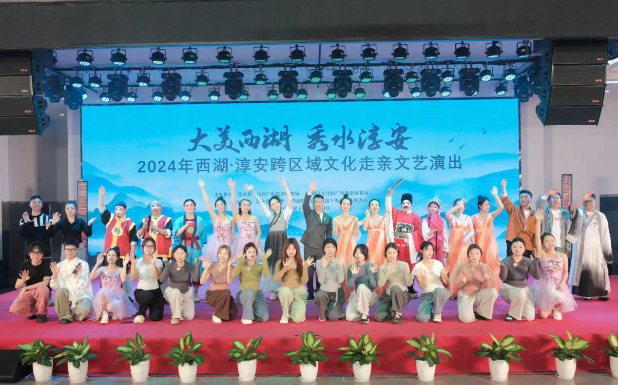 4月11日晚,我校作为石马社区 “红心石”党建联盟单位,受邀参加了“大美西湖 秀水淳安”2024年西湖·淳安跨区域文化走亲文艺演出。该活动由淳安县文化和广电旅游体育局、西湖区文化和广电旅游体育局主办,淳安县文化馆、西湖区文化馆与留下街道公共服务办承办,旨在加强区域间的文化艺术交流,激活社区文化、丰富社区居民生活、提升社区群众文化素质。此次文艺演出通过曲艺、舞蹈等形式,为非遗文化提供了传播和交流平台。