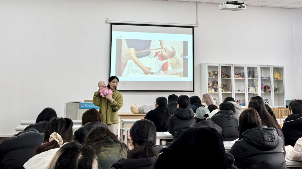 近日,人文与教育学院邀请启桢教育的企业兼职教学督导员郑潇走进课堂,观摩郭金鸿老师讲授的《婴幼儿常见疾病与预防》课程。