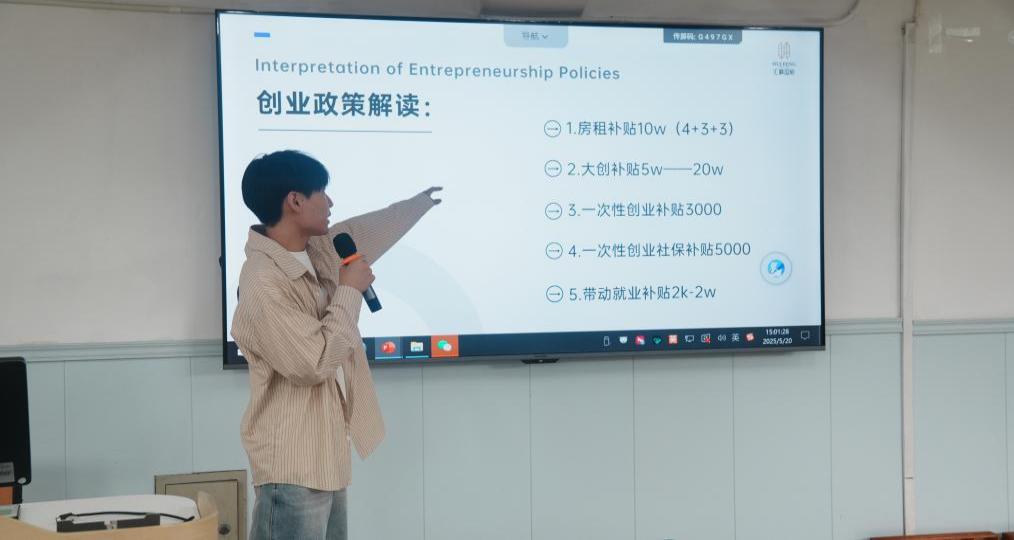 常皓作杭州市大学生创业政策解读,同时介绍了园区为有意入驻开展创业项目的同学们提供配套服务,期望以“政策+资源”双引擎,助力大学生创业者轻装启航。