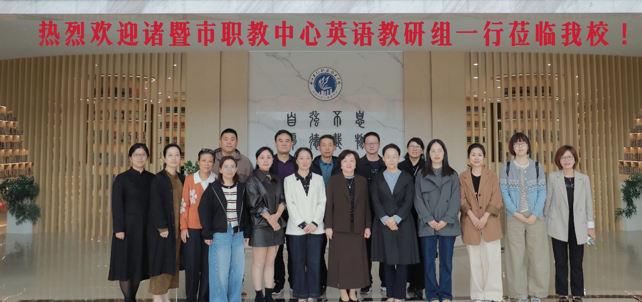 为促进中高职英语教学体系有效对接,推动校际经验互鉴与协同发展, 近日 ,诸暨市职教中心英语教研组朱洁婷老师一行16人 来校 开展调研交流。人文与管理学院院长潘雅辉、党总支副书记丁慧瑛、公共外语教研室主任王秋热情接待。